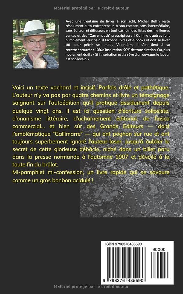 Dans mon opuscule — que j’offre à qui m’en fait la demande — « MES AUTOEDITIONS Splendeurs et misères d’un auteur loser », j’écris pages 38-39 :