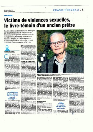 A force de recherches, j’ai pu retrouver la première page de la DORDOGNE LIBRE, avec ma photo et un titre on ne peut plus explicite. Mais rien n’y a fait.