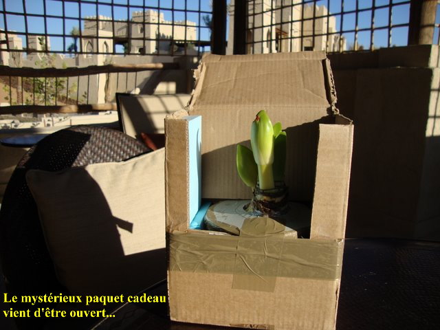 En fait, quand on adopte une fleur, qu'on la chérit, qu'on l'admire, qu'on guette son développement (2 photos quotidiennes sont à peine suffisantes pour immortaliser sa croissance arrogante - 48 cm l'an passé !) est-ce à cause de l'étymologie ? N'est-ce pas plutôt par une connivence secrète, une vraie tendresse teintée d'anthropomorphisme poétique ? N'est-ce pas surtout parce que c'est cette plante-ci qu'on aime offrir ? Et à ce sujet, je dois bien avouer que ma pratique est ambivalente, pour ne pas dire consensuelle. C'est ainsi que je viens de faire livrer à une très chère amie, chrétienne en capilotade qui se meurt en province d'une dépression chronique, un oignon d'amaryllis. Pour la réconforter, j'aurais pu lui offrir une bougie, une bible voire une brassée de roses - ce que je fais parfois. Non, ce fut ce pauvre oignon qui allait sous ses yeux peu à peu ascensionner ! Et pour accompagner mon présent ces quelques mots : « Connais-tu, chère N*, ma fleur préférée ? Suis chaque jour sa croissance, pour raviver ton espérance ! ».