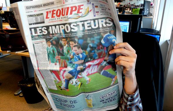 Sur le quai de la gare de St Cloud, je regardais vendredi dernier par-dessus une épaule ce titre énorme barrant la Une d'un quotidien. Ah bon ? Quels imposteurs ? S'agirait-il de membres du gouvernement amateurs de jets et de havanes et de passe-droits et de dessous de table et de cumul de mandats et de doublement d'indemnité et de permis de construire fallacieux et d'appartements de fonction de la République et… ? Mais non ! seulement nos tricolores qui venaient de s'incliner piteusement devant les Aztèques. Ouf ! on a eu très chaud. Ceci dit, pourquoi une telle outrance éditoriale pour ce non-évènement annoncé ?
