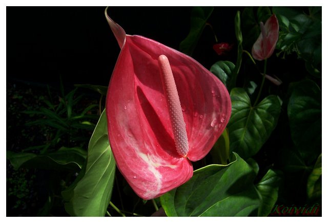 - Tu vois, Michel, je t'avais promis que tu en aurais la primeur. Que dis-tu de cette inflorescence pourpre ? C'est une espèce nouvelle dans la famille des Aracées. Et j'avoue que depuis que je te connais, mon art a progressé. Je l'ai baptisée Anthurium Isidorium Phalloïdum.
